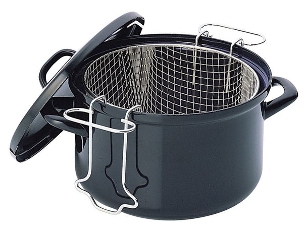 Cookinglife Oliebollenpan - Frituurpan - Braadpan - emaille - met mand - ø 24 cm / 4 liter