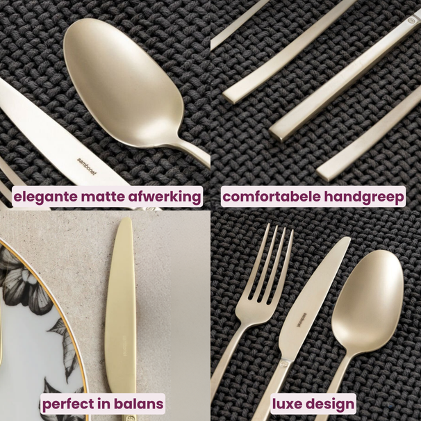 Of je nu een klassieke, moderne of luxe uitstraling wilt creëren, bij Cookinglife vind je een bestekset voor 12 personen die perfect bij jouw smaak past. Ga voor een tijdloze en duurzame uitstraling met roestvrij staal (RVS bestek) of kies een trendy afwerking zoals zwart bestek, goud bestek of koper bestek voor een extra chique effect. Daarnaast zijn er besteksets met houten of kunststof handgrepen, die een warme en unieke uitstraling geven. Voor elke stijl en gelegenheid hebben we de perfecte set.