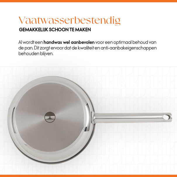 ELLE Gourmet Moderne Koekenpan - Ø 24 cm - Zonder anti-aanbaklaag - RVS