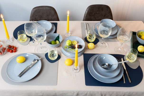 Jay Hill Placemat - Vegan leer - Grijs / Blauw - dubbelzijdig - ø 38 cm