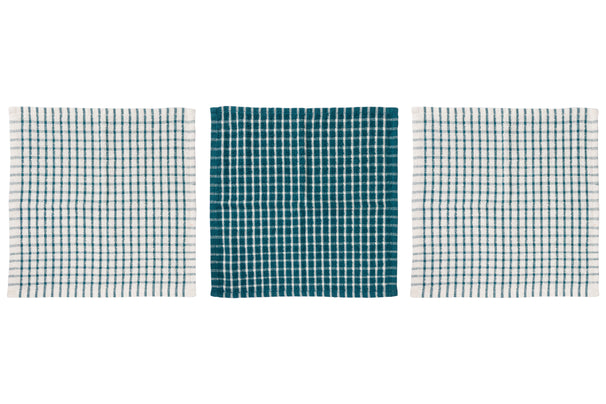 Walra Keukendoeken Set Cubes Uni, Stripes & Blocks Legergroen 50 x 70 cm - 3 Stuks