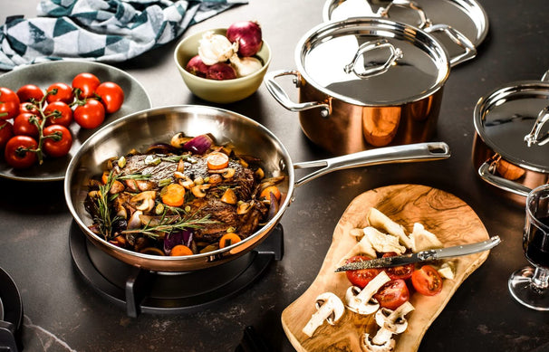 Zelfs professionele chefs koken nog steeds het liefst met koperen pannen. Na zilver is koper de beste geleider van warmte. Koper zorgt voor uitstekende verdeling van warmte langs zowel de bodem als de zijwanden. Een constante en evenredige warmte zorgt ervoor dat uw saus niet zomaar aanzet of zal schiften. Het is ook ideaal om vlees en vis egaal in te garen. Hierdoor zijn koperen pannen uitermate geschikt voor elke gepassioneerde (hobby)kok!