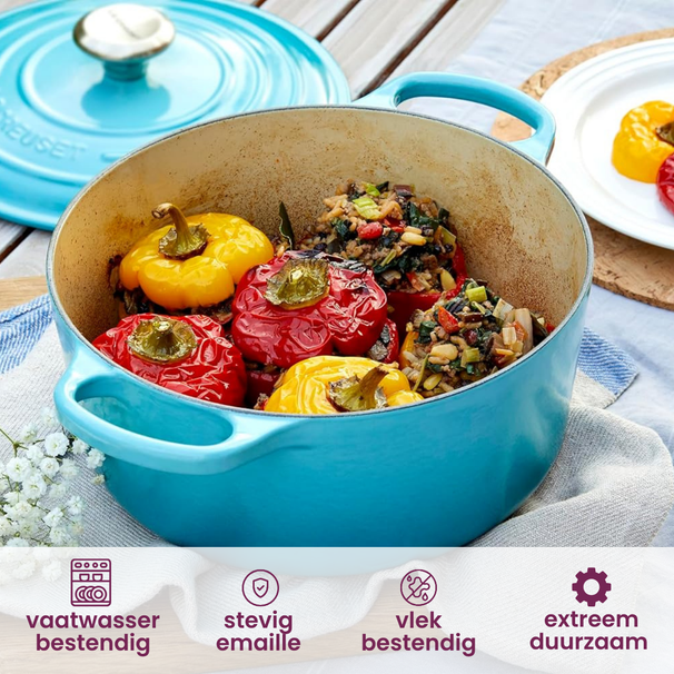 Le Creuset staat voor vakmanschap en kwaliteit. Het bedrijf is opgericht in 1925 in de Franse stad Fresnoy-le-Grand en is sindsdien een belangrijke speler geworden op de markt voor kookgerei. Le Creuset streeft er altijd naar om producten van de hoogste kwaliteit te bieden, gemaakt met de grootste zorg en aandacht voor detail. Het merk heeft een sterke traditie van vakmanschap, waarbij elk product met de hand wordt afgewerkt en gecontroleerd om ervoor te zorgen dat het aan de hoogste normen voldoet. Daarnaast heeft Le Creuset een sterke visie op duurzaamheid en milieubewustzijn, en streeft het er voortdurend naar om zijn impact op het milieu te verminderen. Door de jaren heen heeft Le Creuset een unieke stijl en esthetiek ontwikkeld, met herkenbare en tijdloze ontwerpen die zowel mooi als functioneel zijn. Kortom, Le Creuset staat voor kwaliteit, vakmanschap, duurzaamheid en een tijdloze stijl die altijd in de mode zal blijven.