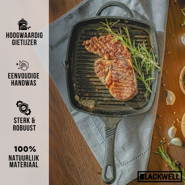 Blackwell Pannenset Gietijzer - Koekenpan ø 25 cm & Grillpan 23 x 23 cm - zonder anti-aanbaklaag 2-Delig