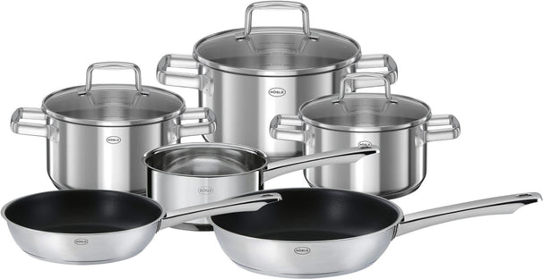 ELLE Gourmet Classique Pannenset met bijbehorende deksels - Zonder anti-aanbaklaag - RVS - 8 Delig