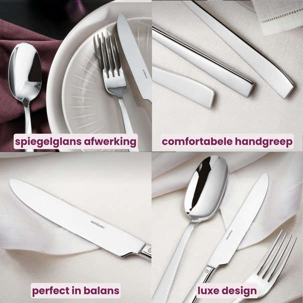 Let wel op: het is van belang dat je het bestek goed behandeld. Laat het niet te lang in vocht of voedingsmiddelen liggen, vermijd het gebruik van geconcentreerde wasmiddelen, gebruik nooit schurende producten en spoel het bestek altijd goed af. Op deze manier kan je de PVD coating niet beschadigen en blijft het bestek lang mooi!