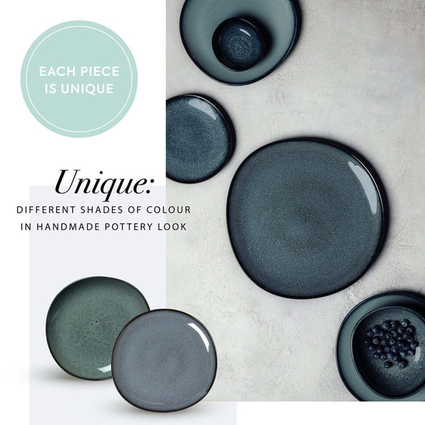 Cosy & Trendy Serviesset Organic Laguna Blue Grey 12-Delig / 4 personen - dinerborden, 4 ontbijtborden en 4 schalen