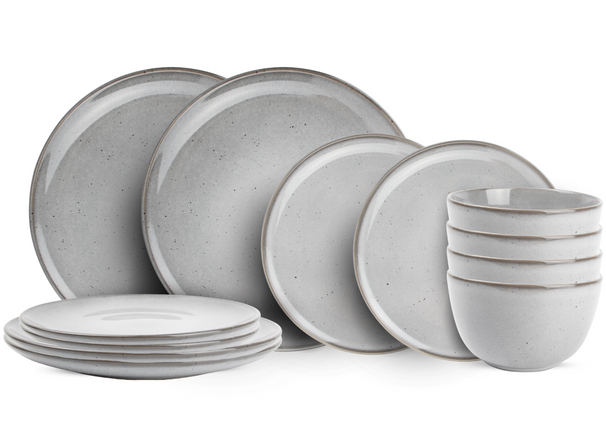 Cosy & Trendy Serviesset Trentino Organisch 12-Delig / 4 personen - 4 dinerborden, 4 ontbijtborden en 4 soepkommen