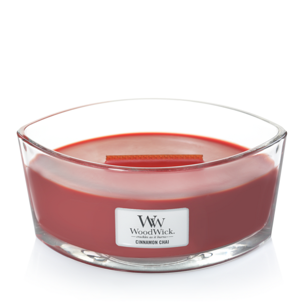 WoodWick Geurkaars Ellipse Cinnamon Chai - 9 cm / 19 cm - Geurkaars in Glas - Houten Lont