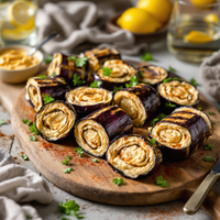 Hoe maak je aubergine rolletjes met hummus