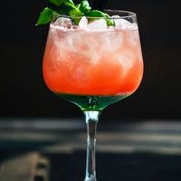 - garnering: munttopje, schijfje grapefruit en eventueel rozenknopjes