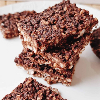 Deze rijstwafelrepen met chocolade zijn een snel en makkelijk tussendoortje voor onderweg. Verkruimel rijstwafels en hak noten fijn. Smelt kokosolie en meng met cacaopoeder en honing, en roer dit door de rijstwafel- en notenmix. Druk het mengsel in een bakblik, laat het een uur opstijven in de koelkast en snijd daarna in repen. Ideaal om mee te nemen en heerlijk als gezonde snack!