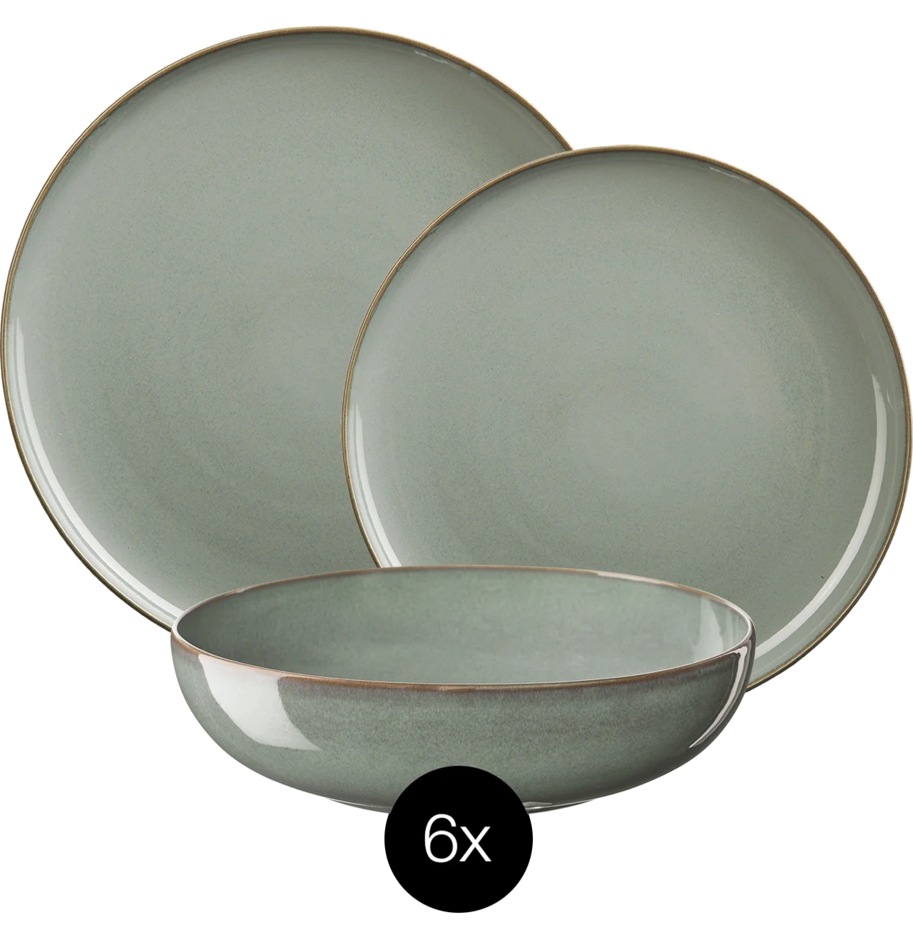 Omschrijving ASA Selection Serviesset Saisons - Eucalyptus - 18 delig / 6 personen - 6 dinerborden, 6 kommen en 6 ontbijtborden