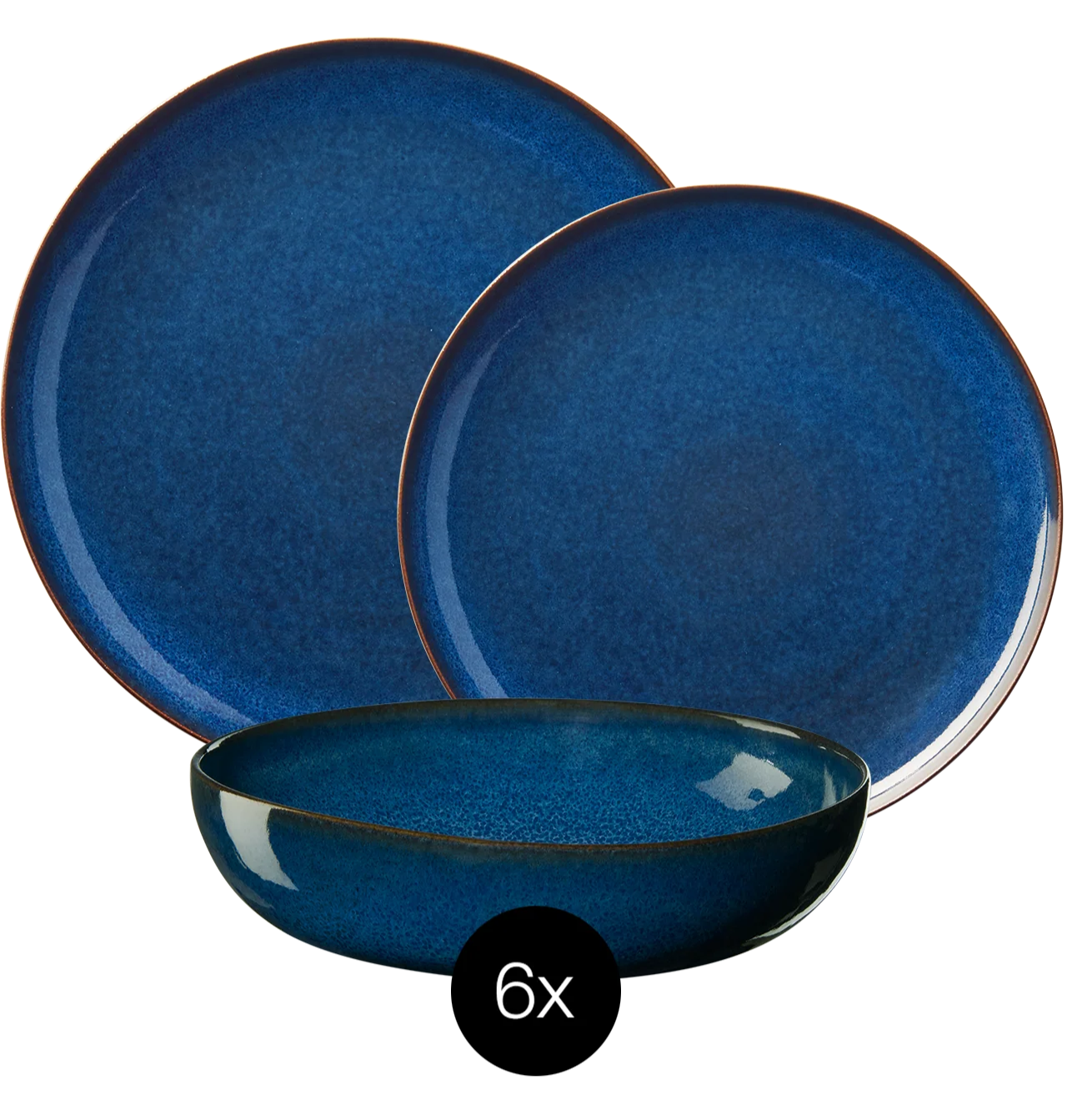 Met deze stijlvolle serviesset van ASA Selection verzorg je moeiteloos een complete tafelsetting voor zes personen. De set bestaat uit stevige stoneware met een diepe midnight blue-reactive glaze die een luxe, handgemaakte uitstraling geeft. Perfect voor warme en koude gerechten, van soep tot hoofdgerecht en dessert. Dankzij het tijdloze ontwerp passen de borden en kommen zowel bij een modern als klassiek interieur. Deze 18-delige set is ideaal voor dagelijks gebruik en feestelijke gelegenheden.