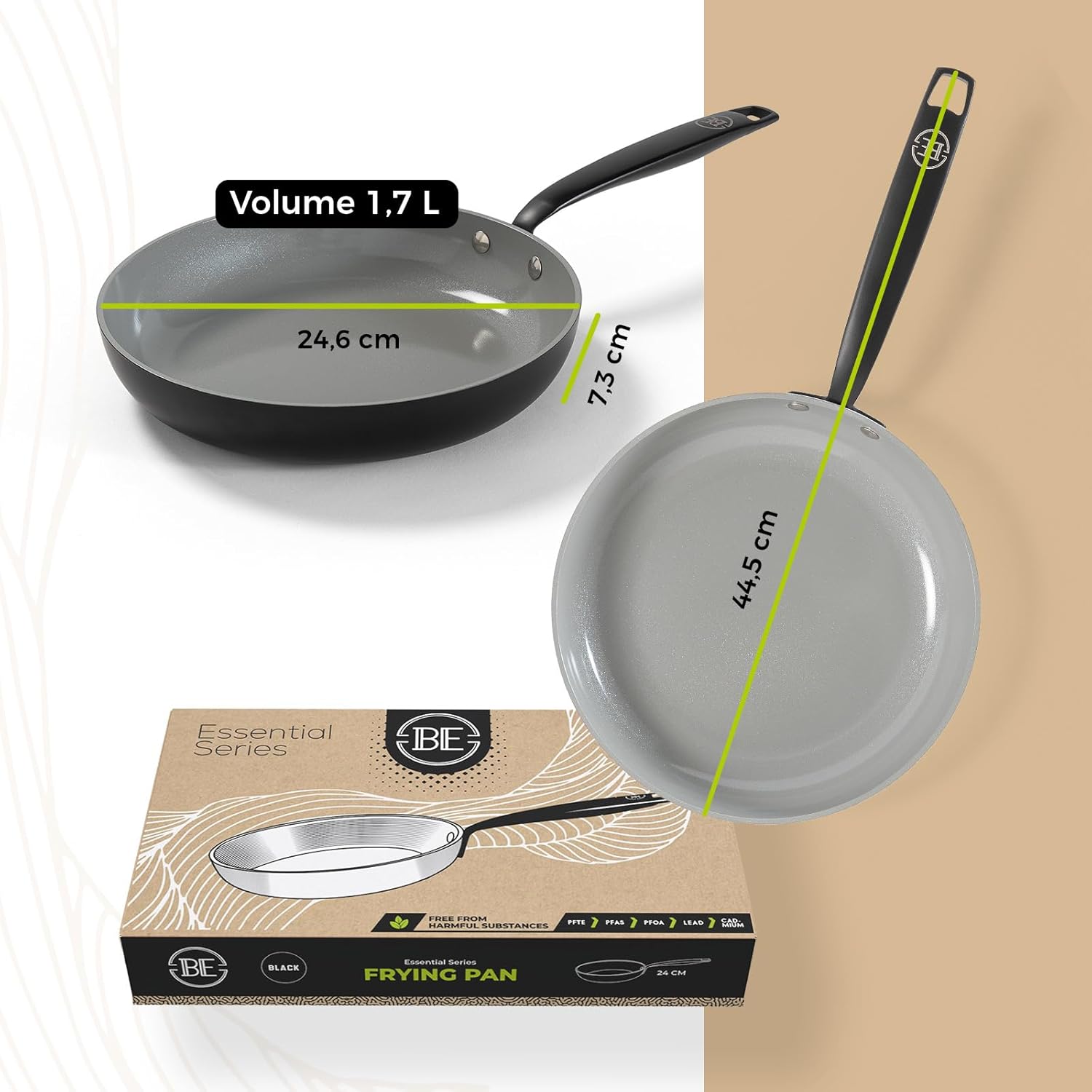 De BE Living koekenpan van 24 cm in stijlvol wit is ontworpen voor dagelijks gebruik. Dankzij de PFAS-vrije keramische anti-aanbaklaag bereid je gerechten met minder vet, en de pan is eenvoudig schoon te maken. Geschikt voor alle warmtebronnen, inclusief inductie.