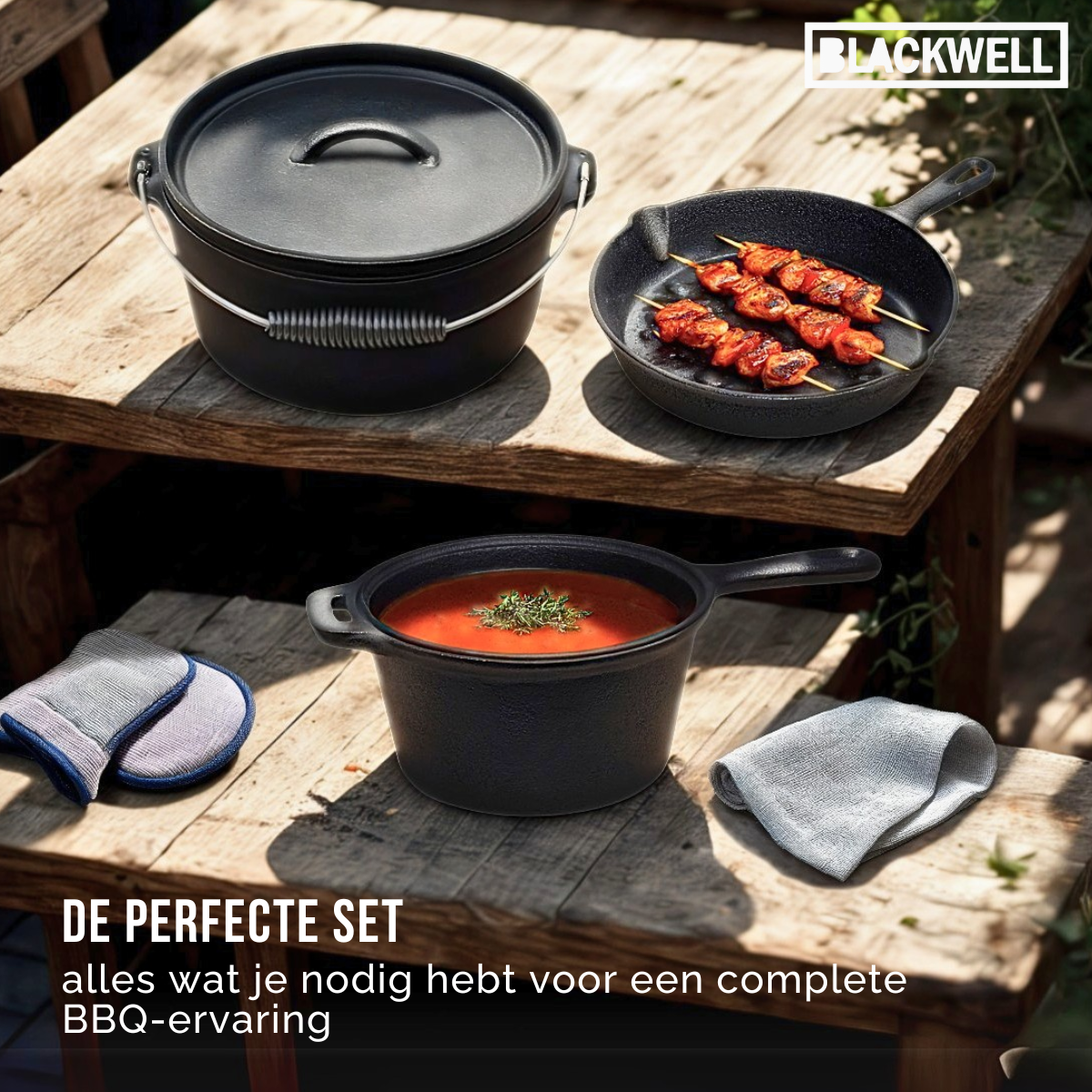 Met de Blackwell Dutch Oven BBQ set haal je een betrouwbare en veelzijdige pannenset in huis die jouw kookervaring naar een hoger niveau tilt. Perfect voor culinaire liefhebbers die waarde hechten aan kwaliteit en functionaliteit.