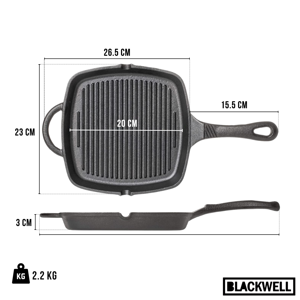 Blackwell Grillpan - Gietijzer - 23 x 23 cm - Zonder Anti-Aanbaklaag
