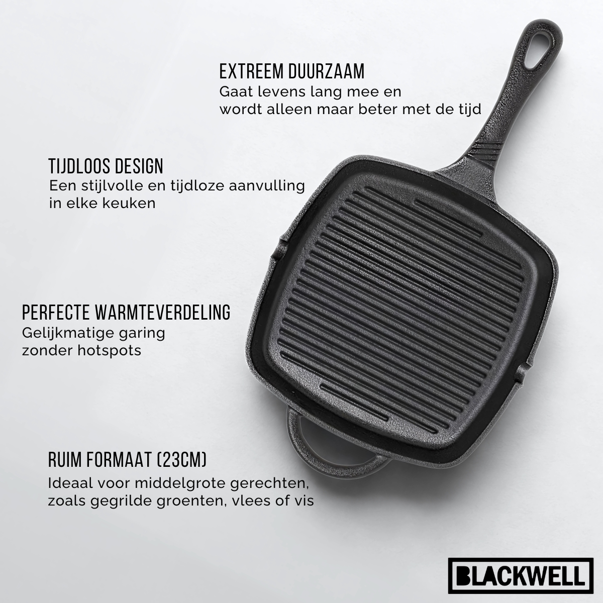 Voordelen van de Blackwell Grillpan - Gietijzer - 23 x 23 cm - Zonder Anti-Aanbaklaag