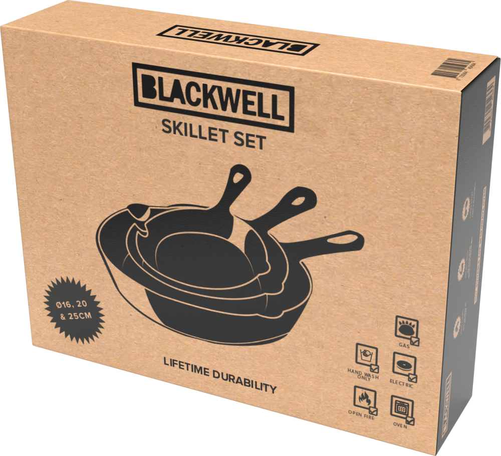 Voordelen van de Blackwell Koekenpannenset - Skillet Ø 16, 20 en 25 cm - Gietijzer