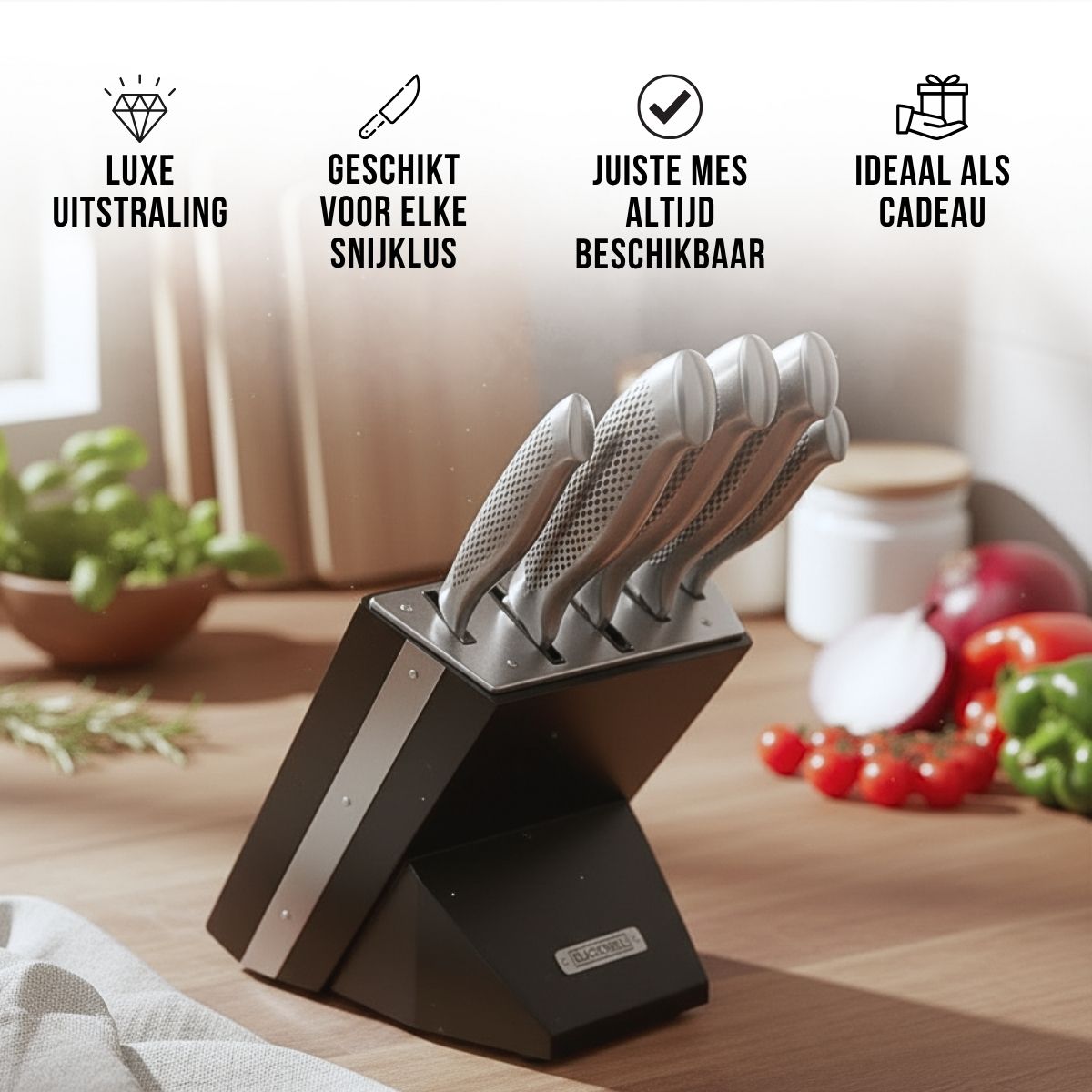 Omschrijving Blackwell Messenblok - Noire - Koksmes, Santokumes, Broodmes, Officemes & Schilmes 6-delig