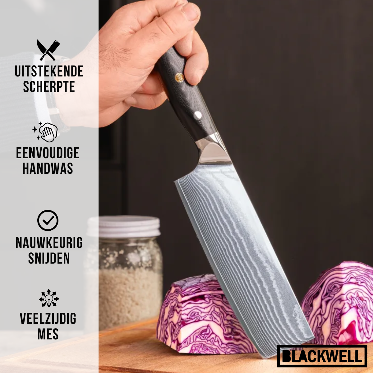 Blackwell Messenset (Koksmes + Groentemes / Nakirimes) - Japanse stijl - 67 lagen damaststaal - VG10 - 2-delig
