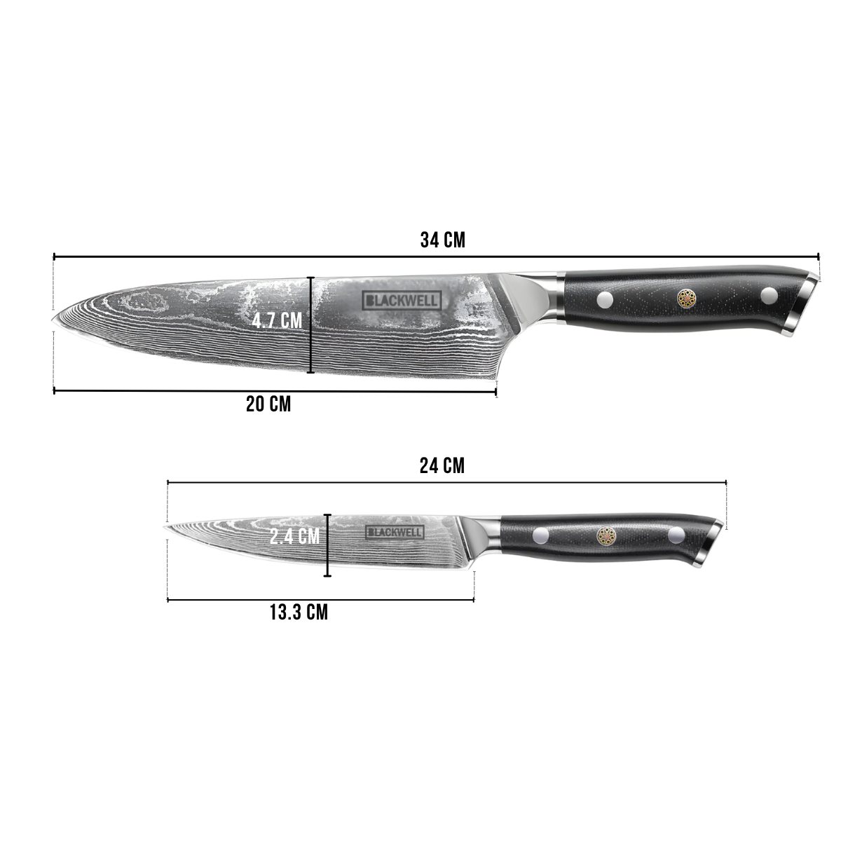 Omschrijving Blackwell Messenset (Koksmes + Officemes) - Japanse stijl - 67 lagen damaststaal - VG10 - 2-delig