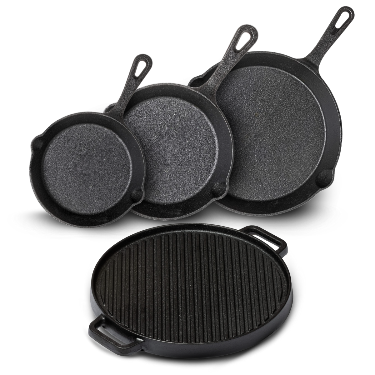 Omschrijving Blackwell Pannenset Gietijzer - Koekenpan 16, 20 & 25 cm & Grillplaat ø 30 cm - 4 Delig