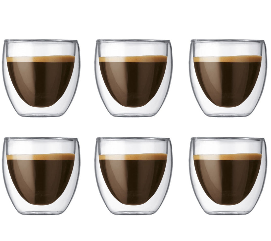 - 6 Bodum Dubbelwandige Espressoglazen Pavina 80 ml