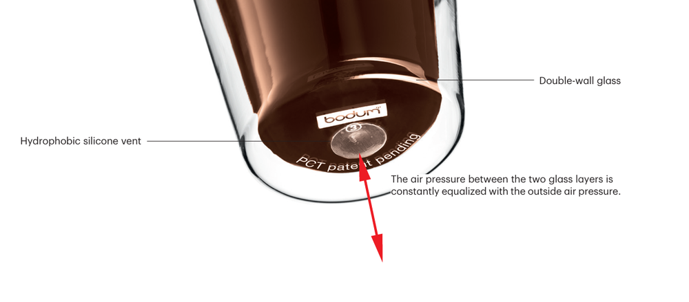 Door dit ventiel gaan de Bodum dubbelwandige glazen minder snel kapot