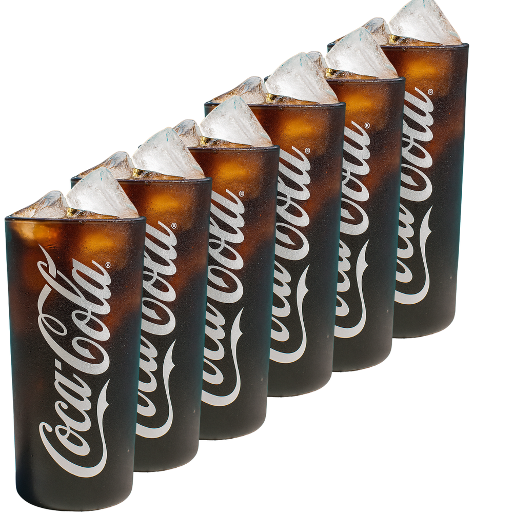 Deze zwarte Coca Cola glazen van 270 ml zijn niet alleen ideaal voor het serveren van jouw favoriete drankje, maar ze zien er ook nog eens ontzettend hip uit. Deze Coca Cola Glazen Frozen zijn niet transparant maar hebben een mist effect. Het glas ligt fijn in de hand, waardoor je optimaal kunt genieten van die verfrissende slok cola. Deze Coca Cola longdrinkglazen zijn vaatwasserbestendig.