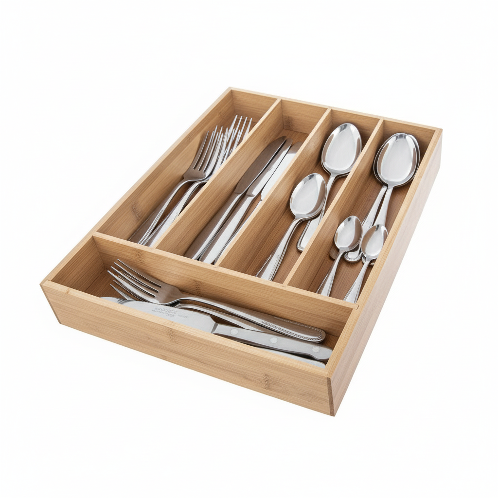 De bestekbak is gemaakt van stevig bamboe, een materiaal dat bekendstaat om zijn duurzaamheid en warme uitstraling. Het is een bewuste keuze voor een betrouwbare oplossing die lang meegaat. Veel gebruikers merken dat hun keuken direct overzichtelijker wordt en ervaren daardoor meer comfort tijdens het koken. Dat gevoel kun jij ook eenvoudig bereiken.