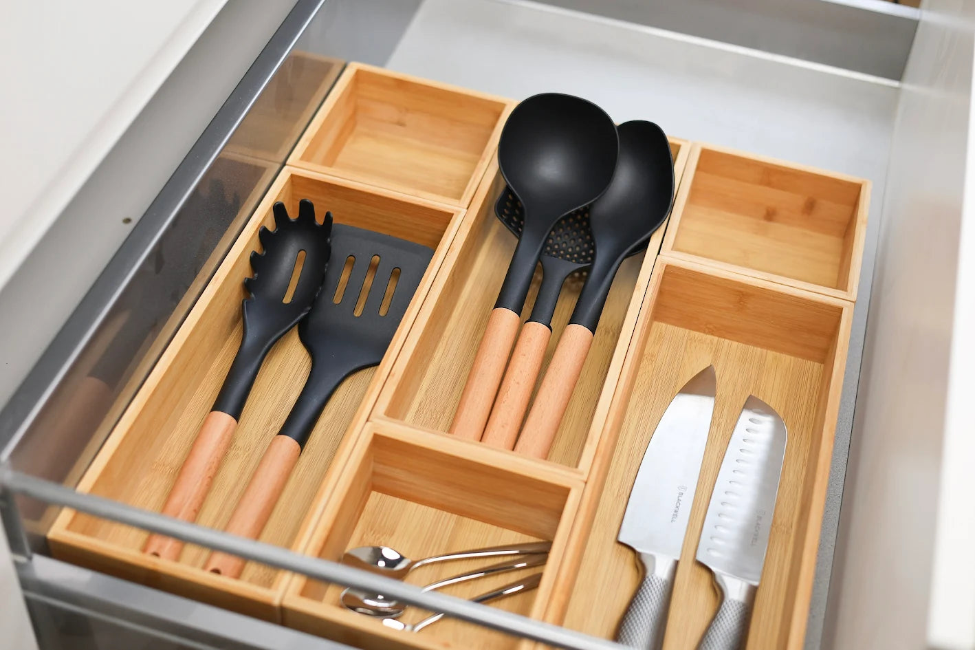 Omschrijving Cookinglife Bestekbak Theelepels - Opbergbox - Multi Organizer - Bamboe 15 x 15 x 7 cm