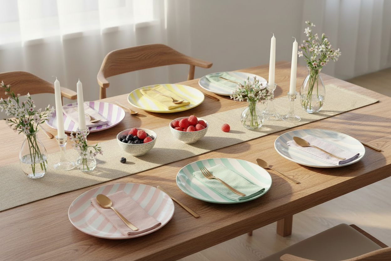 Frisse pastelkleuren met streeppatroon – geeft een unieke, vrolijke en verfijnde look aan je tafelsetting