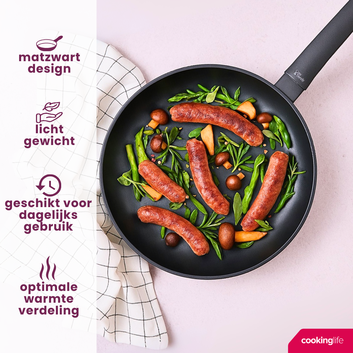 Cookinglife Koekenpan Black Cera – Ø 24 cm – Keramische anti-aanbaklaag – PFAS-vrij