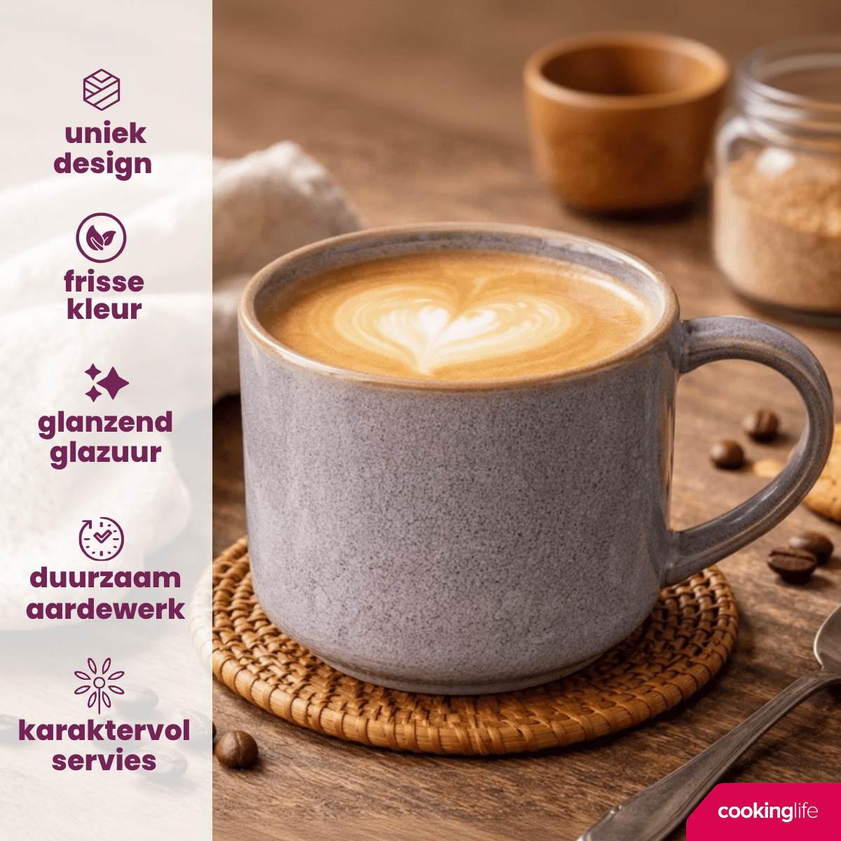 Wacht niet langer! Maak je koffie- en theemomenten nog specialer met de Cookinglife koffiemokken en theemokken. Bestel nu jouw set van 4 en geniet van elke slok!