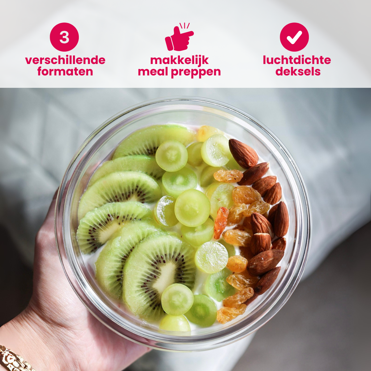 • Luchtdichte deksels – de luchtdichte deksels zorgen ervoor dat het eten langer vers blijft