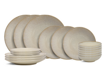 Omschrijving Cookinglife Serviesset Coastal Lines Ocean Beige 18-delig / 6 personen - 6 dinerborden, 6 ontbijtborden en 6 diepe borden