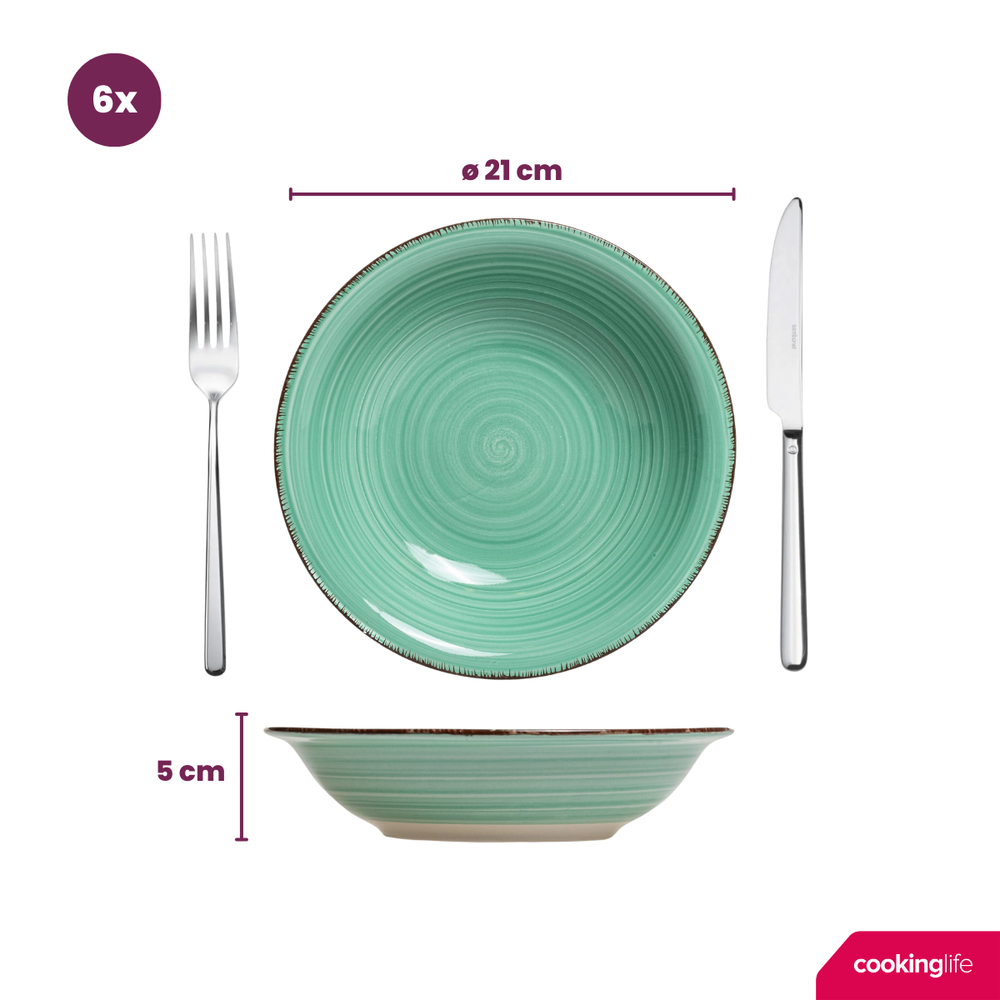 Cookinglife Serviesset Delice Groen 18-delig / 6 personen - 6 dinerborden, 6 diepe borden en 6 ontbijtborden