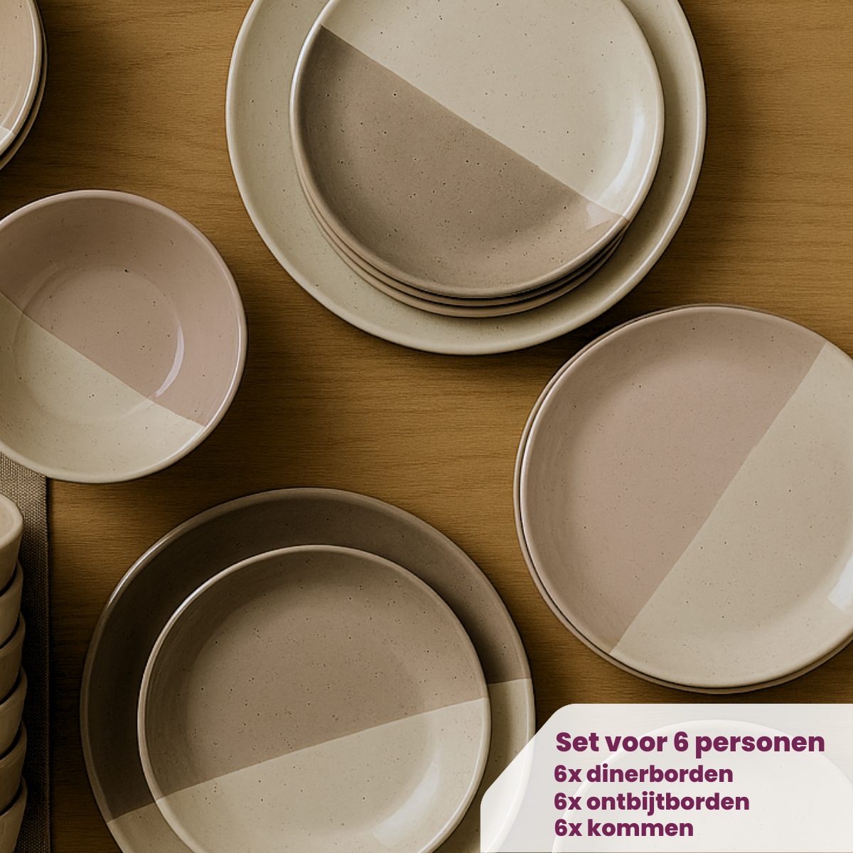 - Compleet 18-delige set voor 6 personen – met dinerborden, ontbijtborden en kommen