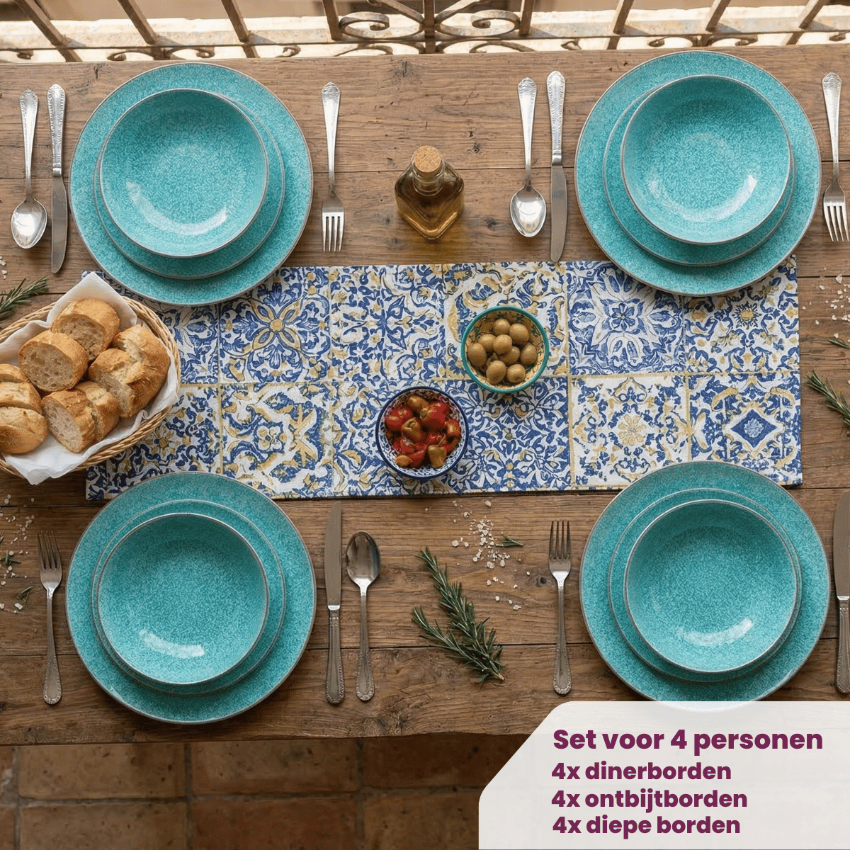 - Complete set voor 4 personen - 4 dinerborden, 4 ontbijtborden en 4 diepe borden - alles wat je nodig hebt voor elk moment van de dag, van ontbijt tot uitgebreid diner.