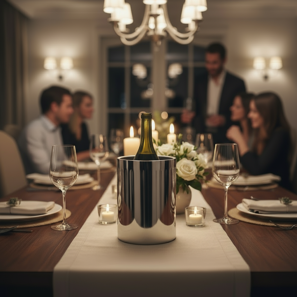 Met de Cookinglife wijnkoeler in chroomkleur houd je je wijn of champagne op een aangename temperatuur. Het metalen ontwerp zorgt voor een moderne uitstraling en door de praktische vorm staat hij stevig op tafel of een wijnrek. Ideaal voor een ontspannen borrel of diner met vrienden.