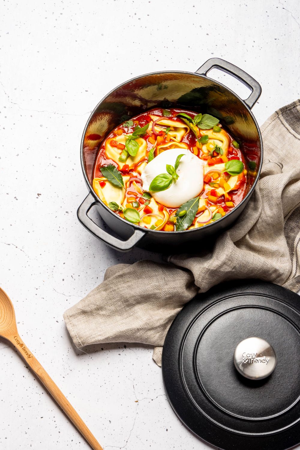 De geëmailleerde binnenkant zorgt voor een perfecte warmteverdeling en voorkomt dat het eten aanbrandt.