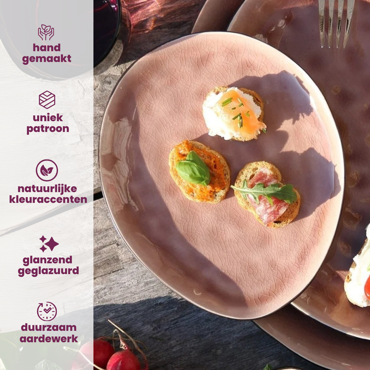 • Cosy & Trendy Ontbijtborden / Dessertborden Organic - Laguna Old Rose - 20 x 16 cm - 4 Stuks