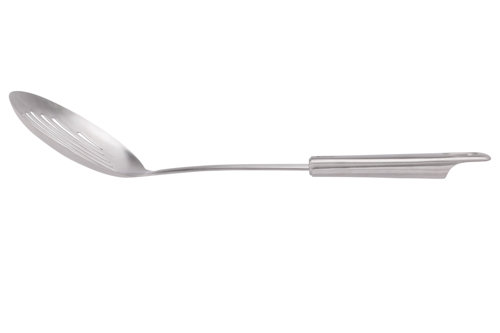 De Cosy & Trendy Schuimspaan - Delish Plus is een professionele en robuuste schuimspaan voor intensief gebruik in zowel horeca als thuiskeukens. Het volledig roestvrijstalen ontwerp voelt degelijk aan en is eenvoudig te reinigen. Dankzij het ruim geperforeerde blad loopt olie en kookvocht snel terug, zodat je ingrediënten knapperig blijven. Het lange handvat geeft goede reach in diepe pannen en levert betrouwbare, hygiënische prestaties tijdens dagelijks werk.