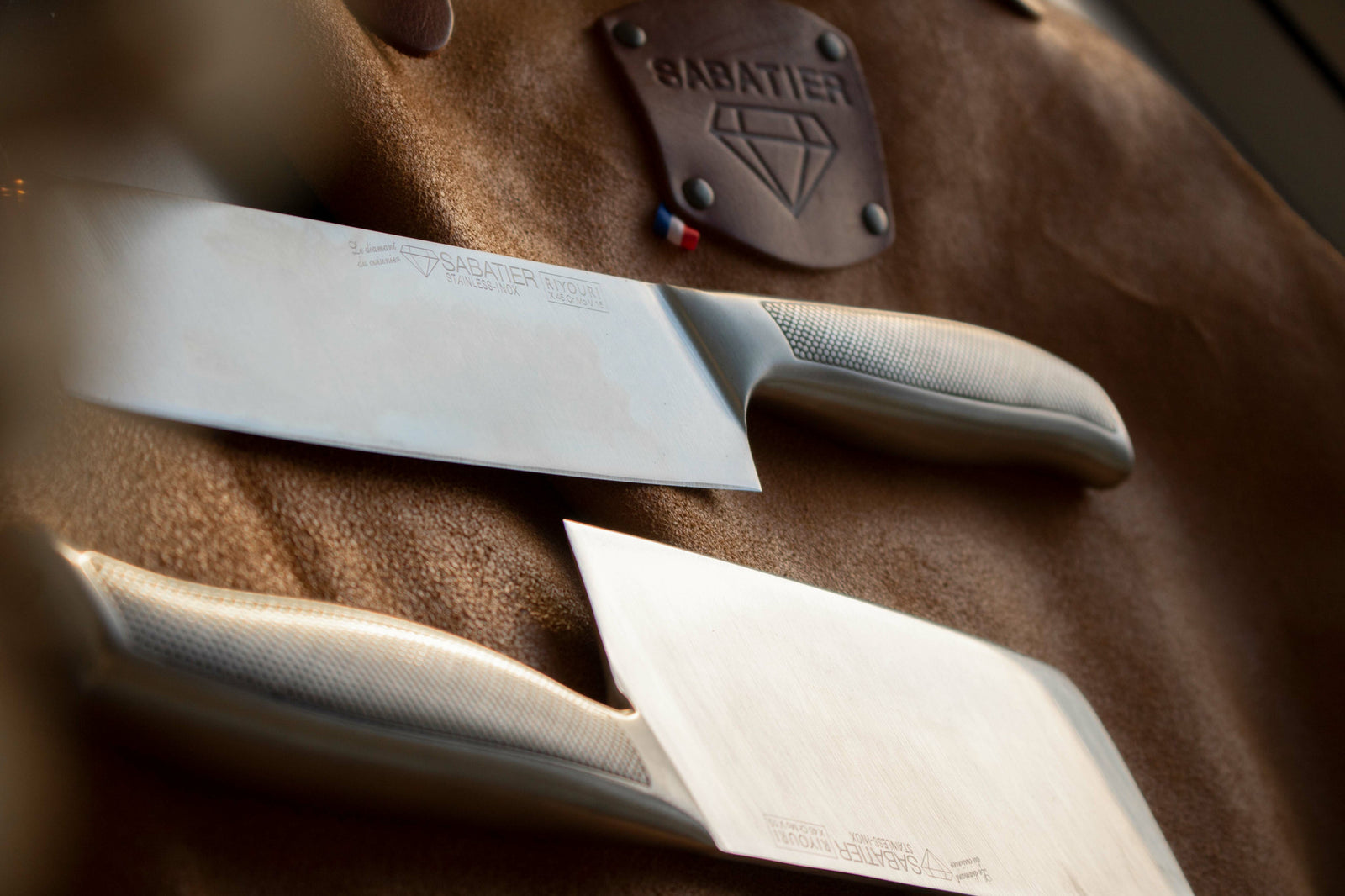 Een hakmes is zo goed als zijn grip. En dat weten ze bij Diamant Sabatier. Het heft van de Riyouri is voorzien van een anti-slip structuur die ervoor zorgt dat je altijd stevig en comfortabel vasthoudt wat je vasthoudt. Geen nerveuze grip, geen verkrampte vingers na een lange middag koken. Gewoon lekker aan het werk, moment na moment. Het heft sluit naadloos aan op het lemmet, wat niet alleen mooi oogt maar ook voorkomt dat vocht of etenswaren zich ophopen op die kritische plek tussen mes en greep. Schoon, veilig en gebruiksklaar.