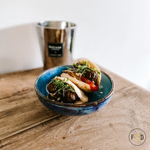 Door de reactieve glazuurtechniek kan kleur en patroon per kom variëren; dit is een kenmerk van de Nova-lijn en maakt elk stuk uniek.