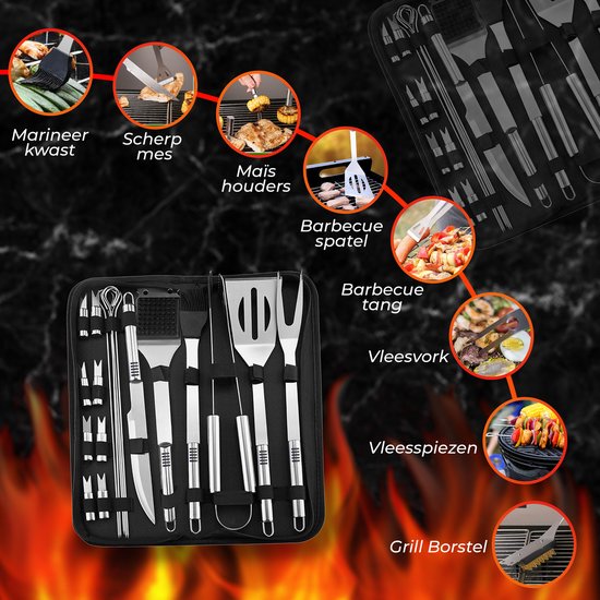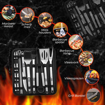 GrillX Barbecue Gereedschap Set - 19-delig - Met Prachtige Draagtas