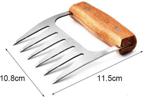 Met deze vleesklauwen met houten handvat wordt het bereiden van vlees een waar genot! Het pakket bestaat uit 2 klauwen, gemaakt van duurzaam hout en roestvrij staal. Door de vlijmscherpe tanden van de klauwen scheur je moeiteloos het vlees uit elkaar.