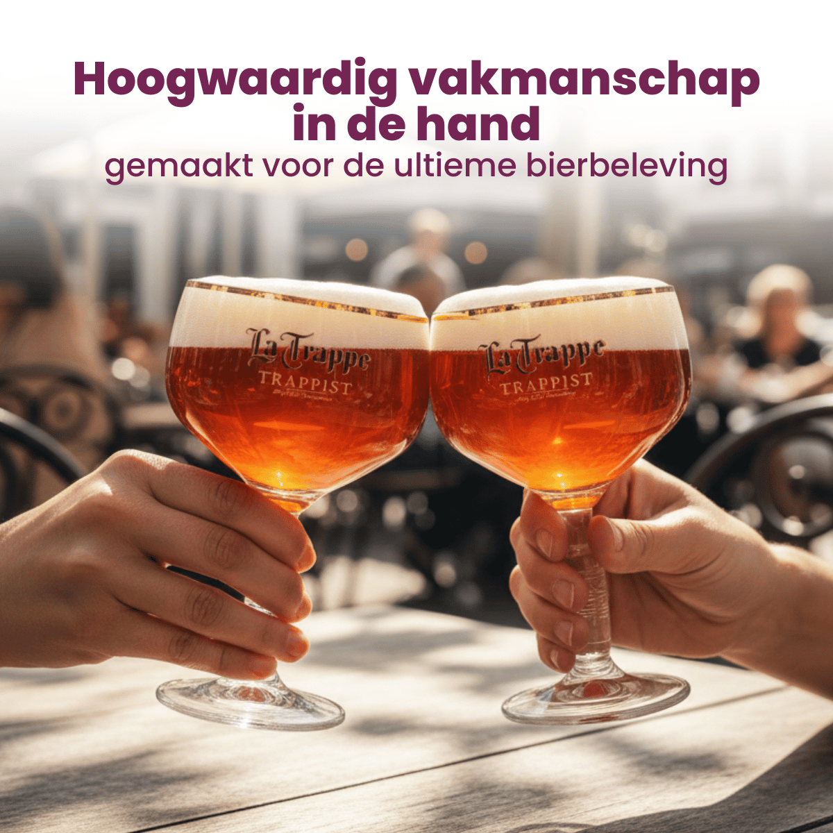 Deze set van twee La Trappe bierglazen in bokaalvorm is ideaal voor het serveren van La Trappe-bier en andere koude dranken. Elk glas heeft een inhoud van 250 ml en een klassieke bokaalvorm die prettig drinkt. Het heldere glas laat de kleur en het bruisen van je drankje goed zien. De glazen zijn geschikt voor gezellige momenten thuis met vrienden of familie.