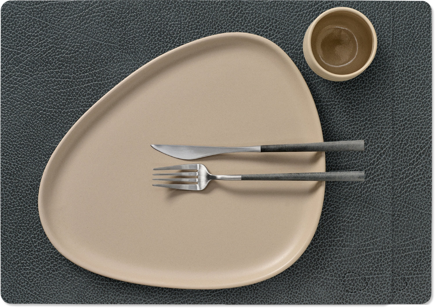 LIND DNA Placemats Hippo – Leer – Black Anthracite – 45 x 35 cm – 2 Stuks